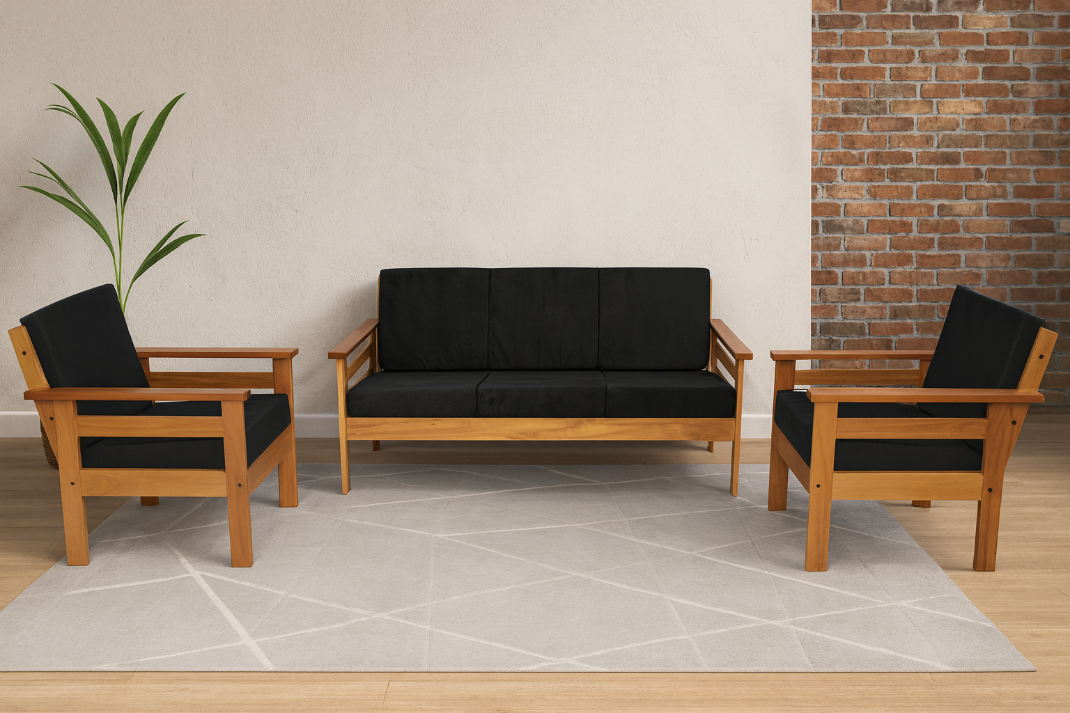 Sofá de Madeira Maciça 3 lugares e 2 Poltronas